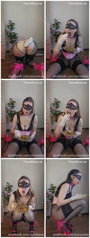 Juicy - Sexy Lingerie Takes Big Bites of Her Own Poop from the Plate. P1 (SD | 2026)